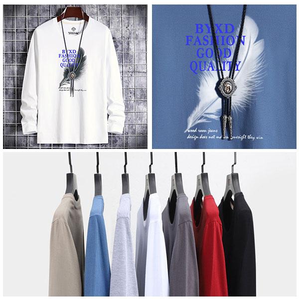 【セール】即納 安い メンズ カジュアル ロングTシャツ 長袖 Tシャツ トレーナー プルオーバー トップス クルーネック フェザ...