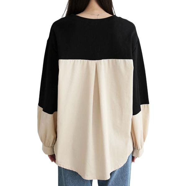 切り替え バイカラー プルオーバー トップス レディース シャツ ゆったり 長袖シャツ ふんわりシルエット カジュアル 春 秋冬