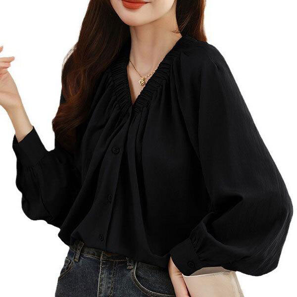 レディース 長袖 シフォンブラウス ワンカラー 5サイズ ポリエステル素材 美しいライン トップス おしゃれ かわいい フレンチ ...