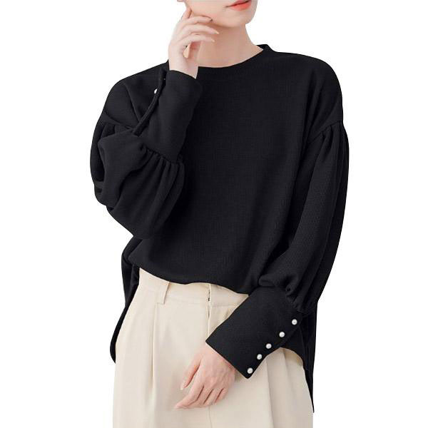 レディース トップス 長袖 ブラウス ボリューム袖 シャツ チュニック丈 無地 バルーン袖 ゆったり 体型カバー きれいめ 春 秋...