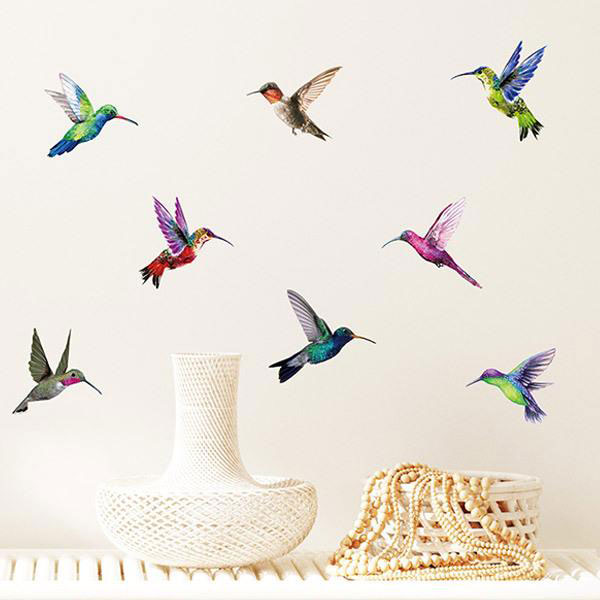 鳥 カラフル ウォールステッカー シールタイプ 4枚セット 壁紙シール 壁装飾 水場 ベッドサイド 寝室 模様替え インテリア 初...