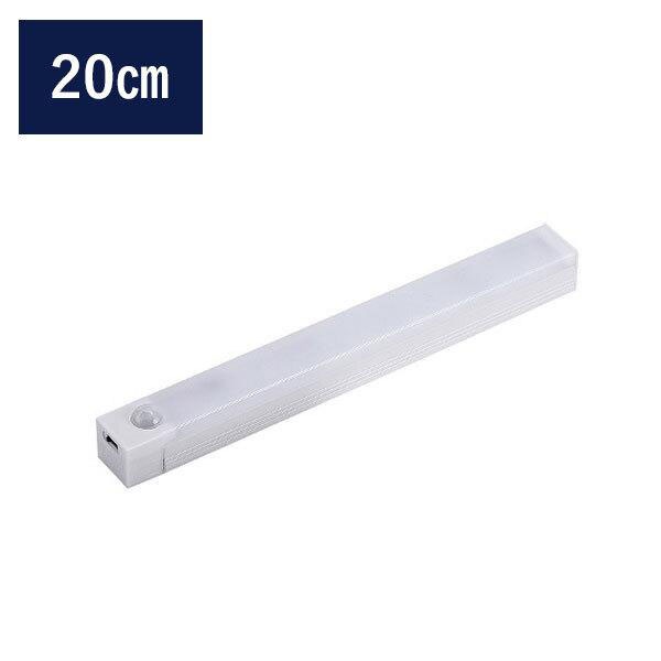 LEDセンサーライト 20cm 人感センサー 点灯モード切り替え可 バーライト マグネット付き USB充電 大容量バッテリー 壁 ...