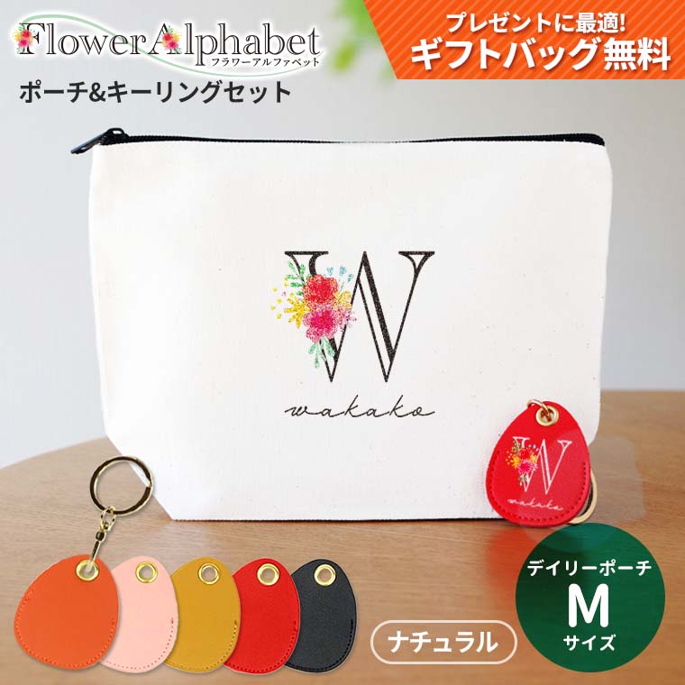 フラワーアルファベット デイリーポーチ&キーリングセット ナチュラルカラー Mサイズ アンシャンテラボ / 誕生日プレゼント 記念...