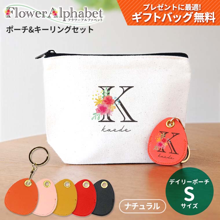 フラワーアルファベット デイリーポーチ&キーリングセット ナチュラルカラー Sサイズ アンシャンテラボ / 誕生日プレゼント 記念...