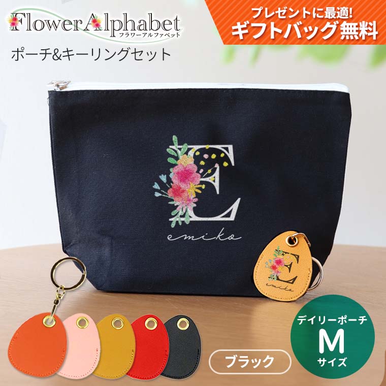 フラワーアルファベット デイリーポーチ&キーリングセット ナイトブラック Mサイズ アンシャンテラボ / 誕生日プレゼント 記念日...