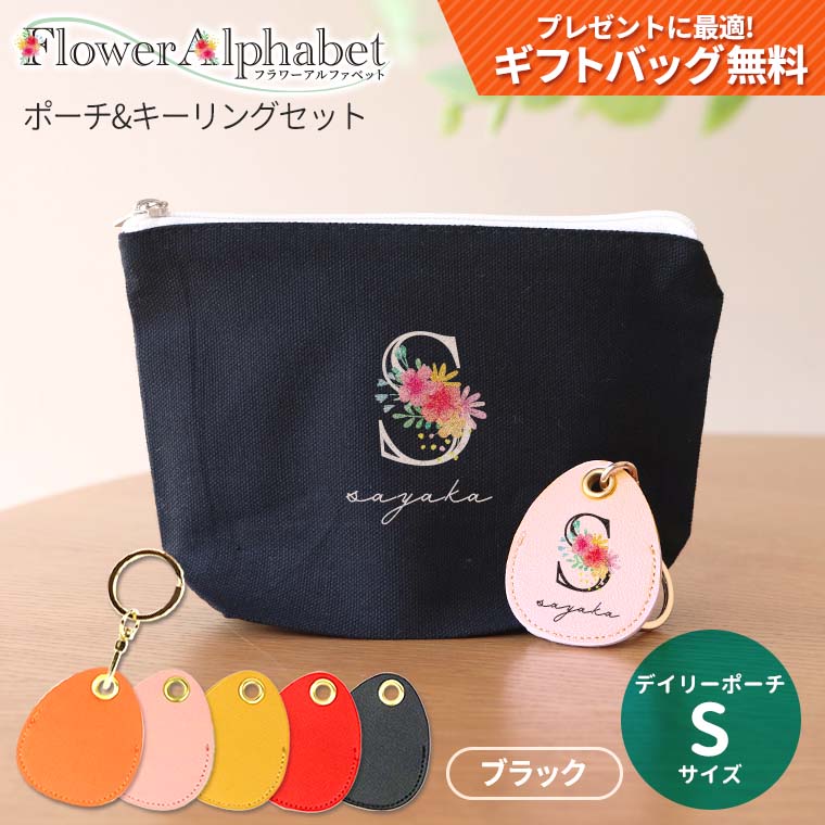 フラワーアルファベット デイリーポーチ&キーリングセット ナイトブラック Sサイズ アンシャンテラボ / 誕生日プレゼント 記念日...