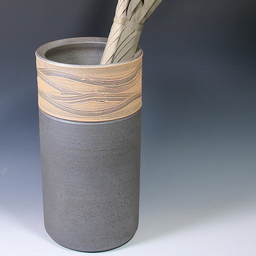 信楽焼 黒さざ波傘立て 陶器 おしゃれ kt-9007