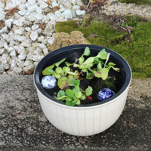 立線ホワイト水鉢 信楽焼 金魚鉢、メダカ鉢にお勧め 陶器スイレン鉢 手水鉢 めだか鉢[su-0249]
