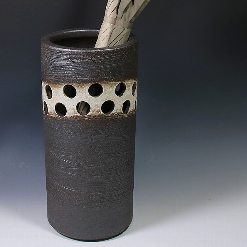 信楽焼 黒釉丸彫傘立て 陶器 おしゃれ kt-9003