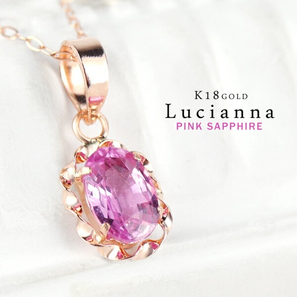 K18 Lucianna 天然 ピンク サファイア オーバル ピンクゴールド ネックレス 18金 K18ゴールド 18k ペンダン...