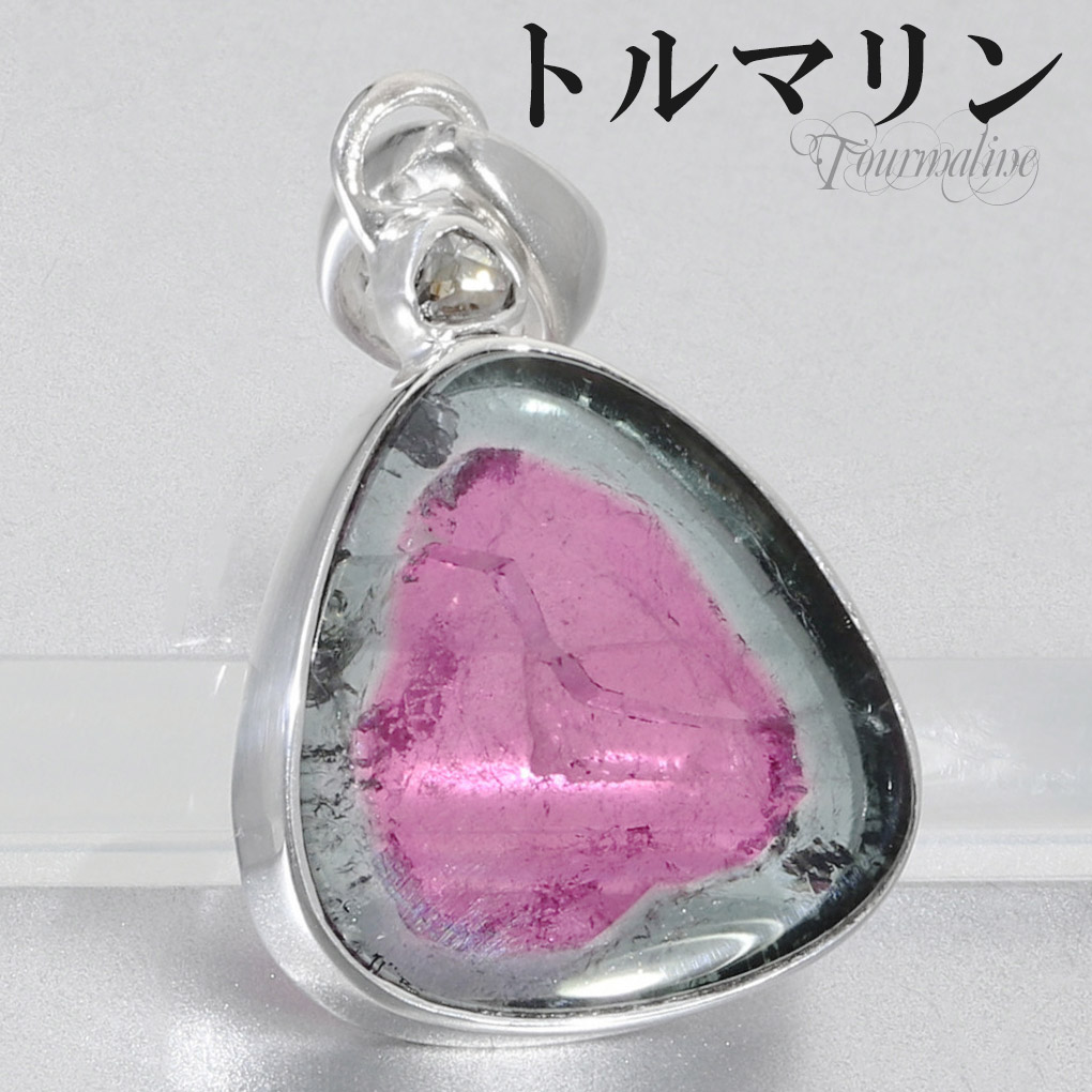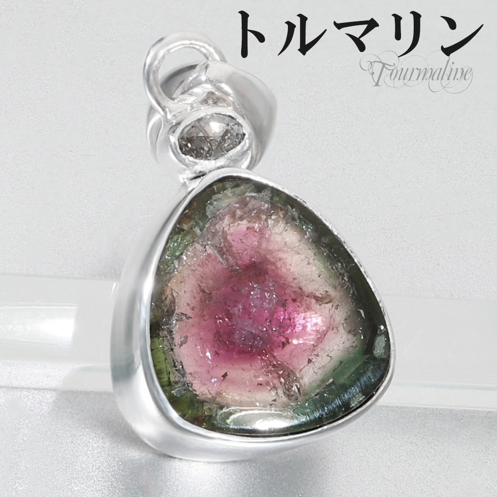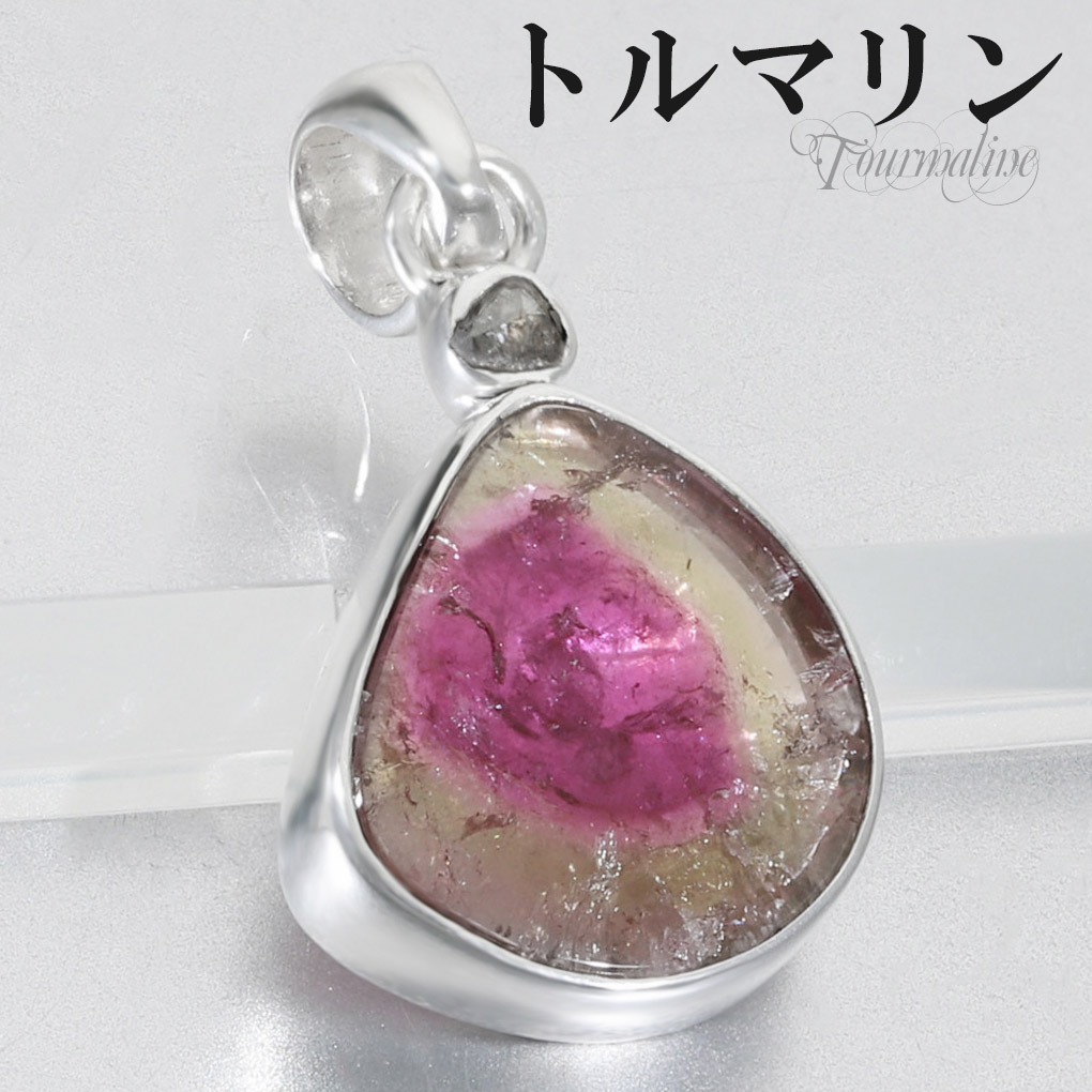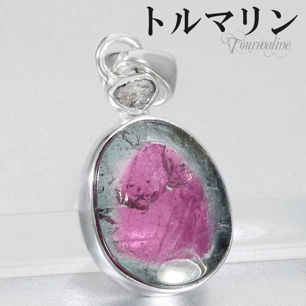 トルマリン トリカラー 天然ダイヤモンド シルバー ペンダントトップ 10月 誕生石 トリカラートルマリン 天然 ダイヤモンド 天...