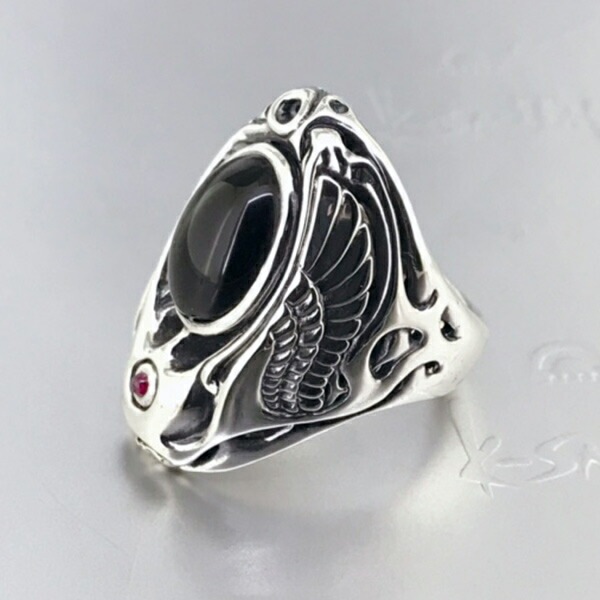 K-SMITH スカル ウィング シルバーリング 11~21号 オニキス ガーネット シルバーアクセサリー 指輪 シルバー925 ...