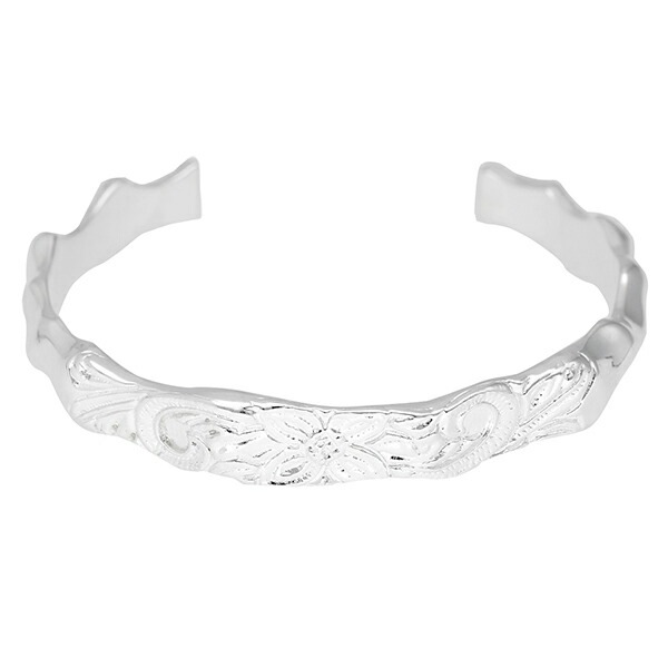ハワイアンジュエリー シルバー バングル 花 プルメリア ブレスレット 腕輪 アラベスク スクロール 波 植物 シルバー925 ハ...