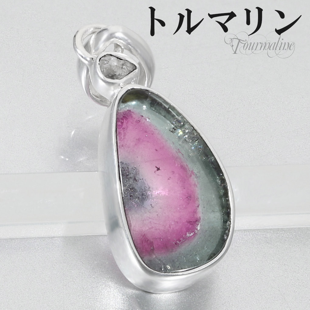 ウォーターメロントルマリン 天然ダイヤモンド シルバー ペンダントトップ 10月 誕生石 トルマリン バイカラートルマリン 天然石...