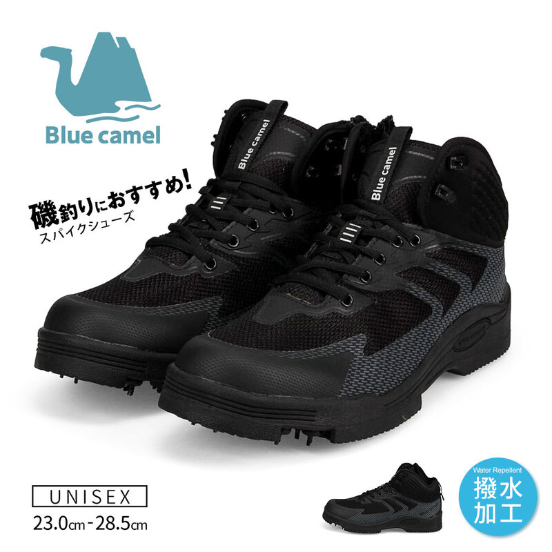 フィッシングシューズ スパイクシューズ 軽量 撥水 釣り フィッシング 磯釣り 沢靴 サイドファスナー アウトドア 防滑 黒 ブラ...
