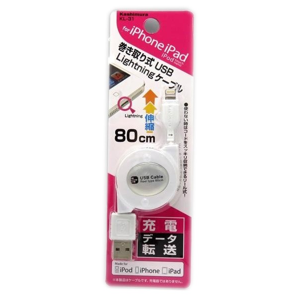カシムラ:USB充電 同期 ケーブル リール Lightningケーブル iPhone iPad iPod/KL-31