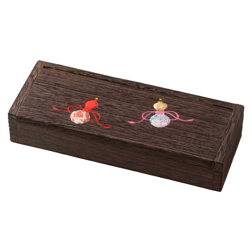 桐の収納箱 アクセサリーケース・小 (043) 折鶴と松葉 木目込細工 桐製・時代仕上 箱長の桐工芸品 日本製 東京浅草の木製品