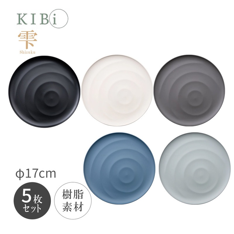 [SHIZUKU-MS5] お皿 5枚セット プレート KIBi 雫 ブラック/アイボリー/グレー/モスグリーン/ブルー φ170...