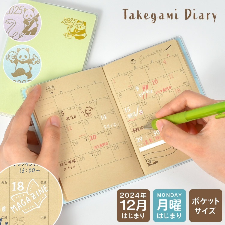 ダイアリー 手帳 スケジュール帳 2025年 12月始まり B6 パンダ 竹紙ダイアリー マンスリー 1ヶ月 月曜日始まり ビジネ...