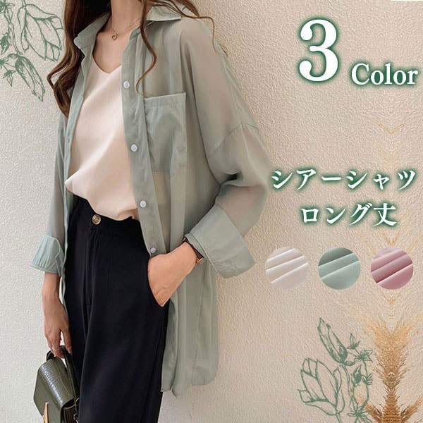 【セール】即納 安い シアーシャツ レディース ブラウス シースルー オーガンジー生地 秋服 ロング丈 ルーズ シャツ 夏 ファッ...