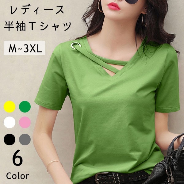 レディース 半袖 Tシャツ Vネック トップス インナー カットソー ワンポイント カジュアル 大人 韓国 ファッション シンプル...
