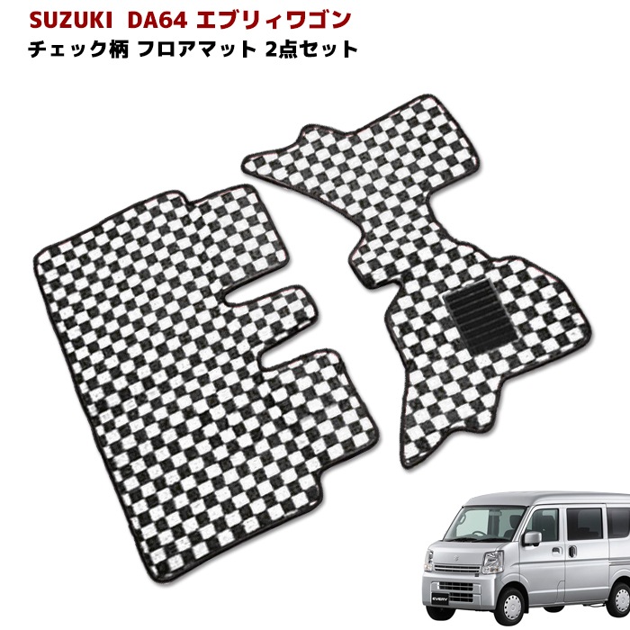 エブリィ ワゴン DA64 フロアマット チェック柄 2点セット 黒白 AT車 フロント セカンド