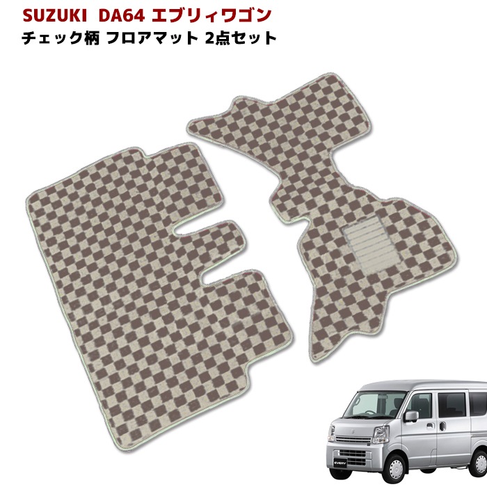 エブリィ ワゴン DA64 フロアマット チェック柄 2点セット ブラウン ベージュ AT車 フロント セカンド