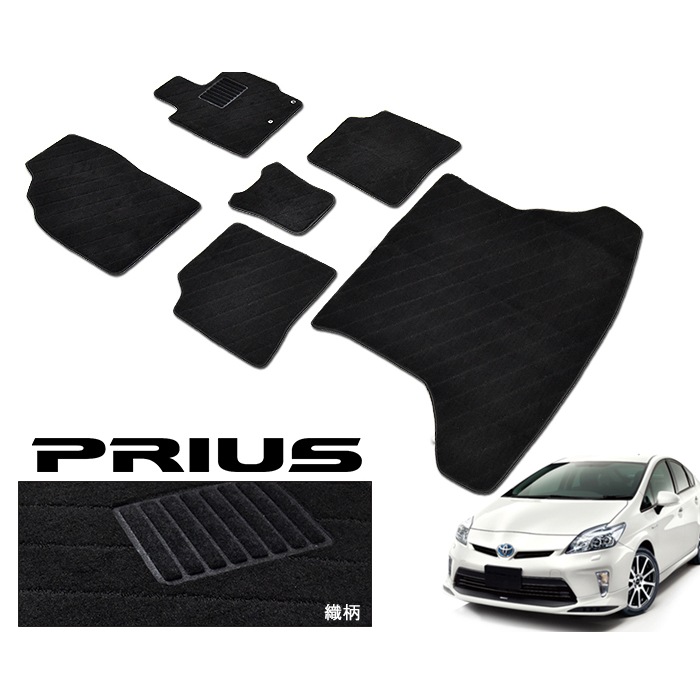 ZVW30 プリウス 前期 後期 フロアマット 織柄 ブラック 6点セット フロント リア ラゲッジ 1台分 セット 30系