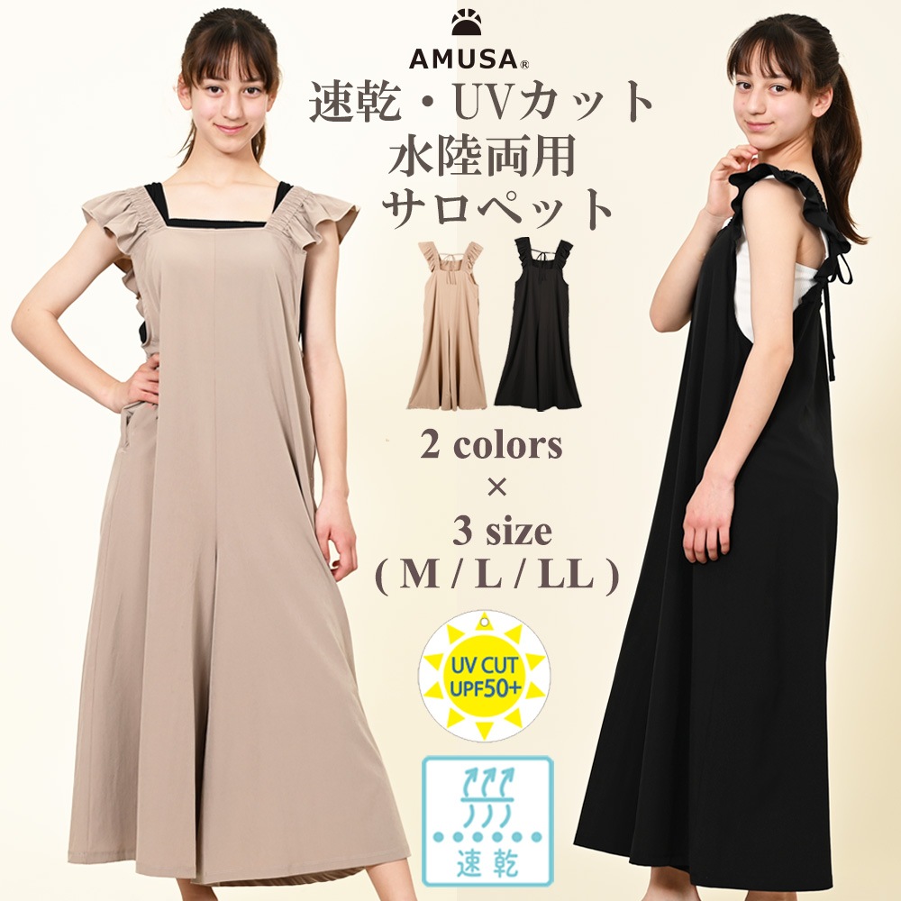 UVカット速乾サロペット M L LL ブラック ベージュ UPF50+