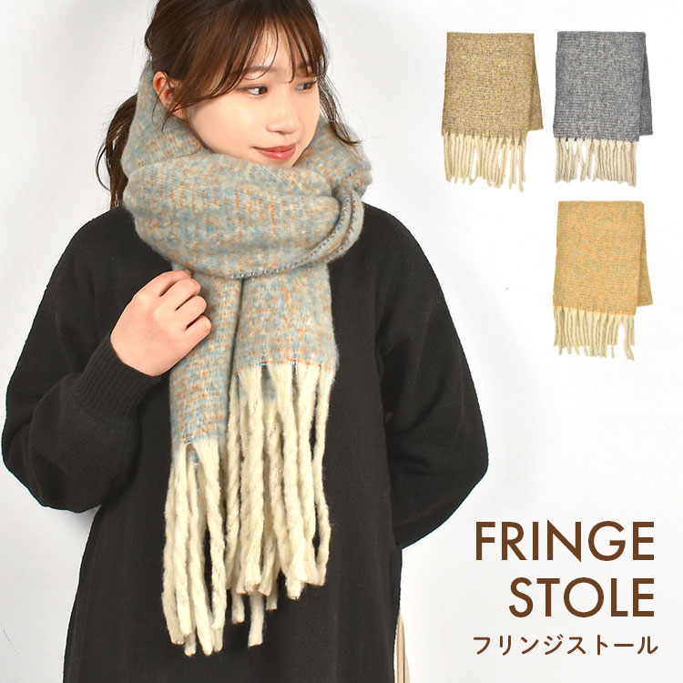 ストール 大判 厚手 ブラウン パープル イエロー ベージュ マフラー レディース おしゃれ かわいい フリンジ 通学 通勤 学生...