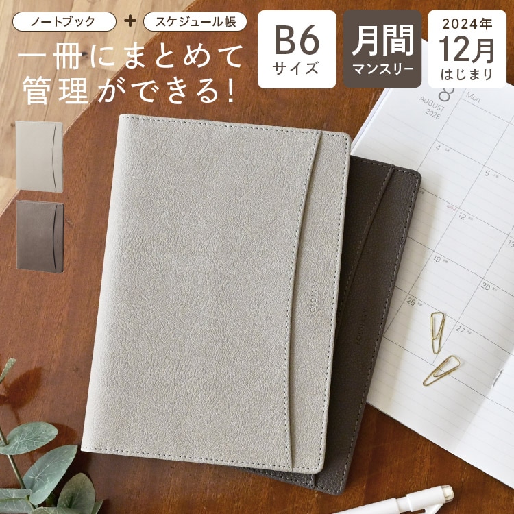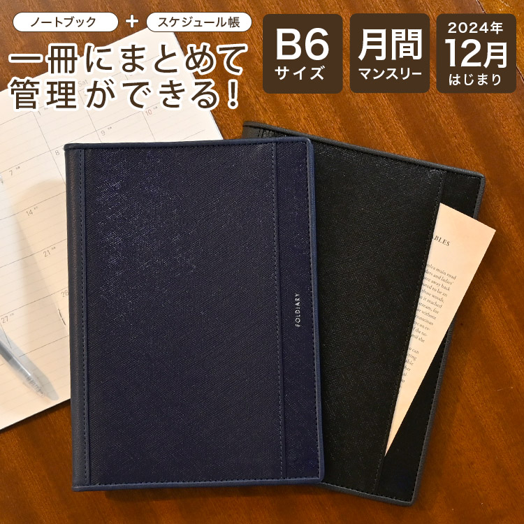 手帳 スケジュール帳 2025年 ダイアリー 12月始まり B6 月曜日始まり フォルダイアリー 月間 マンスリー 1ヶ月 ノート...