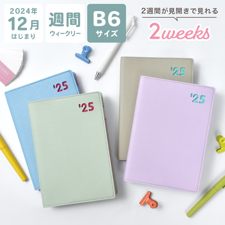 手帳 スケジュール帳 2025年 ダイアリー 12月始まり B6 月曜日始まり タックダイアリー 週間 ウィークリー レフト 月間...