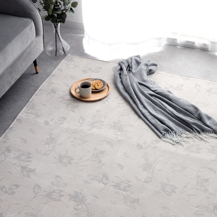 ラグ リージュ シェニール ジャガード織 正方形 長方形 花柄 シンプル モノトーン
