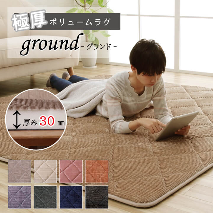 極厚30mm へたりにくい ボリュームラグ グランド 防音 滑り止め コーデュロイ