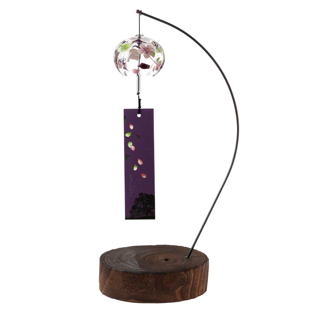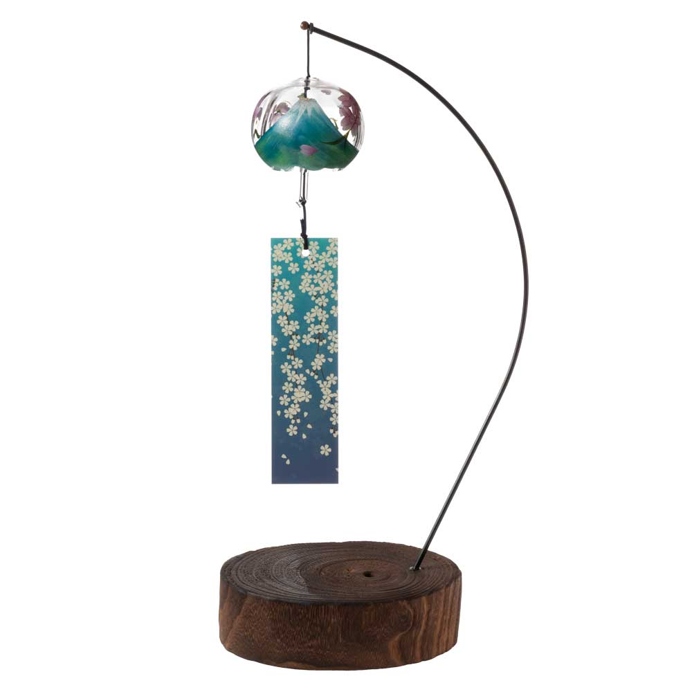 木之本 ぎやまん匠風鈴+スタンドセット 富士桜 室内卓上飾り用 クリスタルガラス ハンドクラフト 和風和柄のウィンドチャイム 日本...