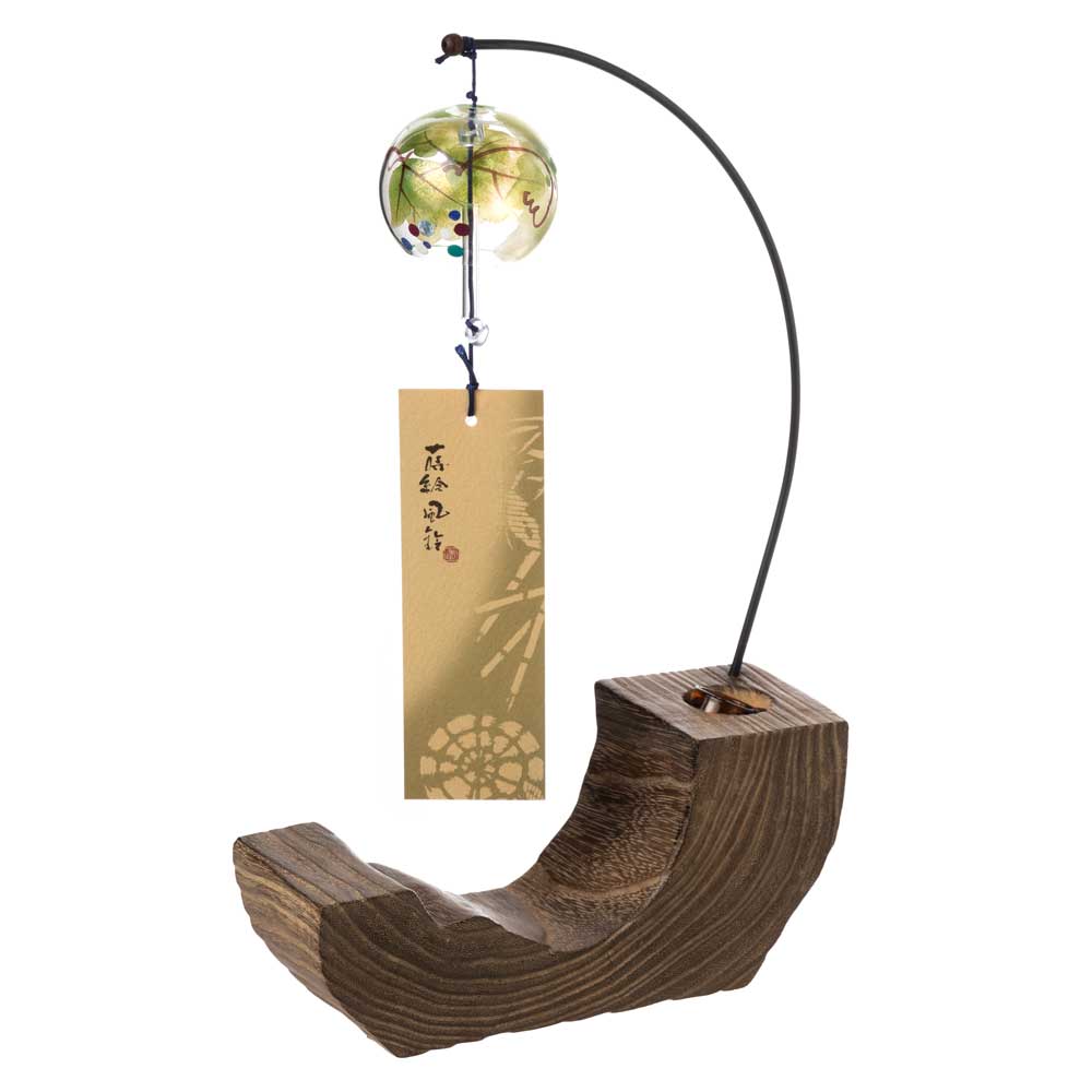 舟型 会津桐卓上風鈴・置き風鈴 野ぶどう ガラス風鈴 蒔絵を施したハンドクラフト製 花生け付 木之本 福島県の工芸品 ※在庫限り