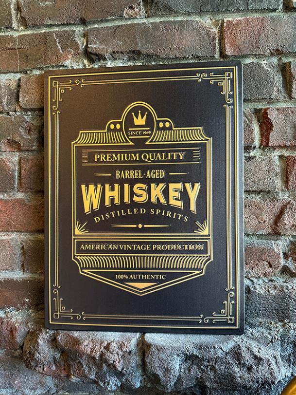 古い建物の看板みたいなお酒の看板 (ウイスキー) エンボスティン ティンサイン ブリキ看板