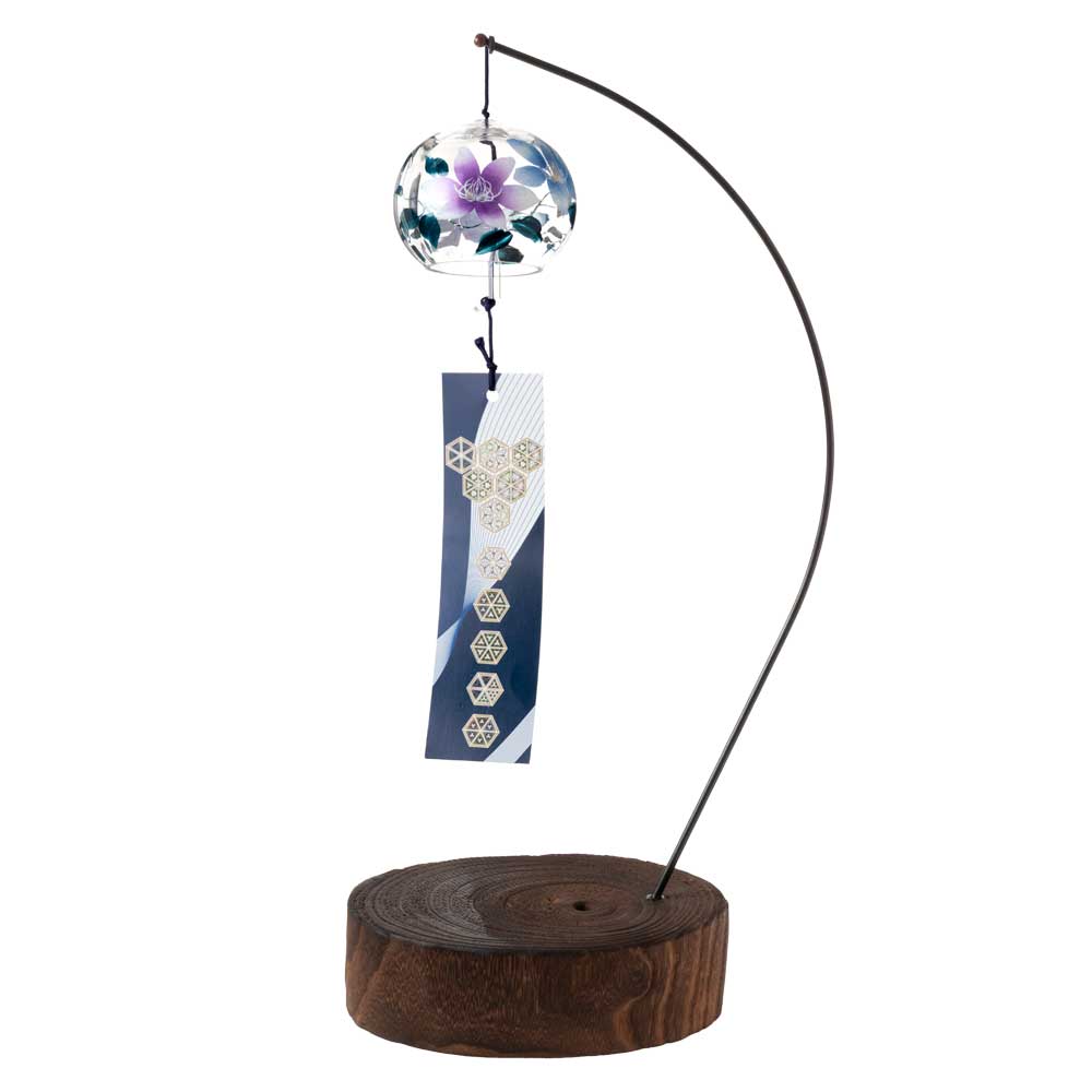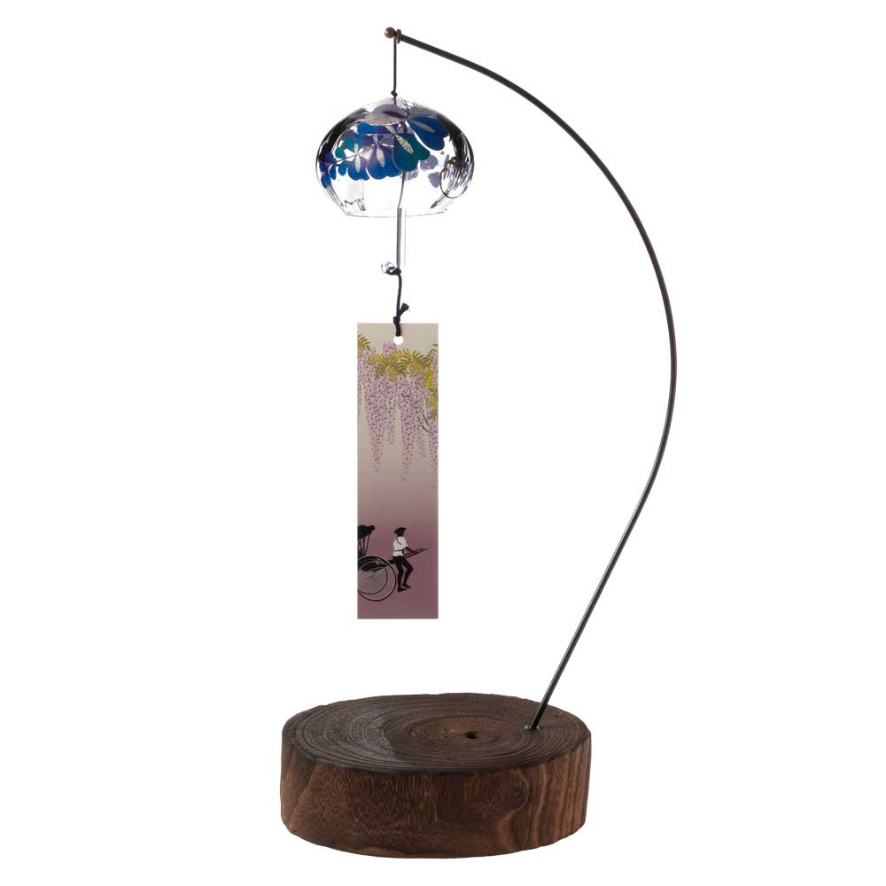 木之本 ぎやまん匠風鈴+スタンドセット 藤 室内卓上飾り用 クリスタルガラス ハンドクラフト 和風和柄のウィンドチャイム 日本製 ...