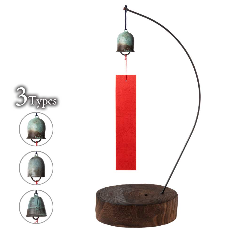 小田原鋳物の真鍮製風鈴+スタンドセット 室内卓上飾り用 柏木美術鋳物研究所・木之本 涼しげな澄んだ音色の金属製インテリア