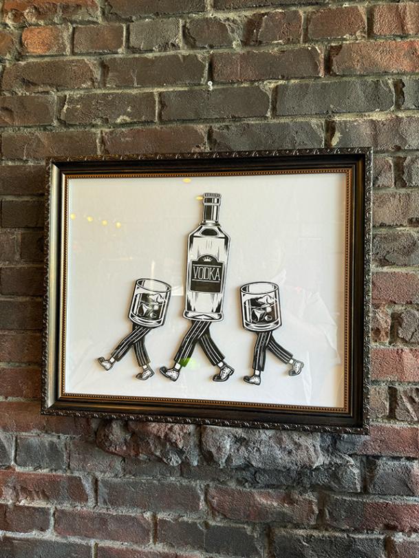 「お酒がテーマ」のフレームアート (歩くウォッカボトル&グラスたち/三人組)