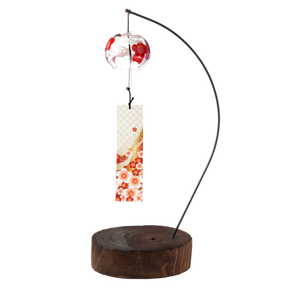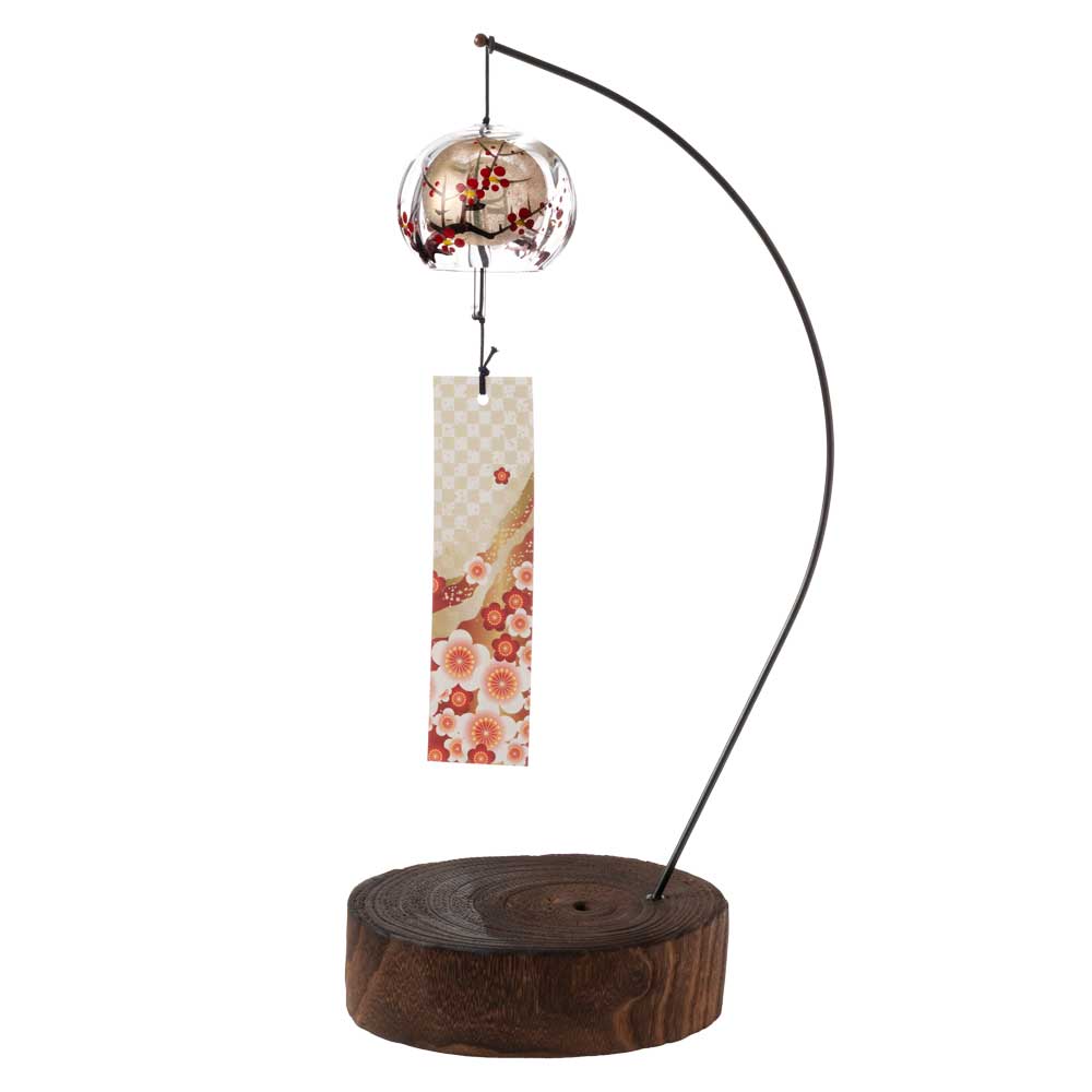 木之本 ぎやまん匠風鈴+スタンドセット 金・銀梅 室内卓上飾り用 クリスタルガラス ハンドクラフト 和風和柄のウィンドチャイム 日...