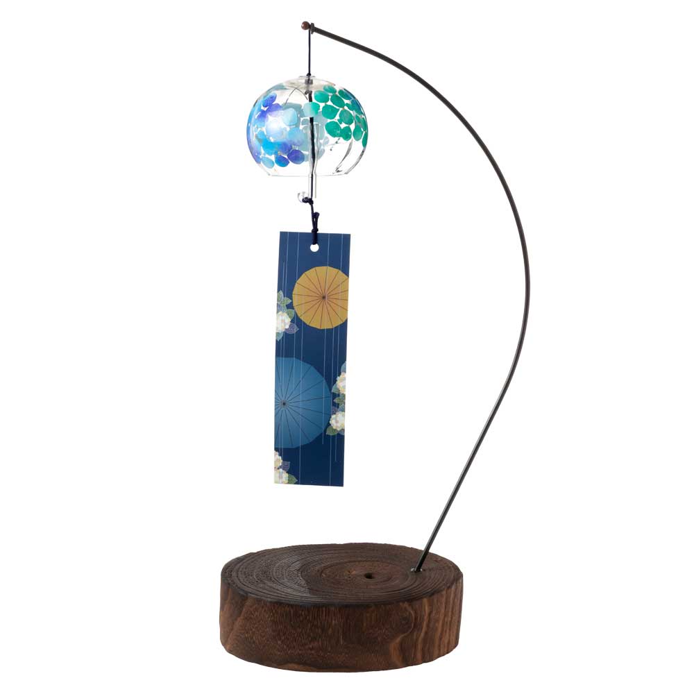 木之本 ぎやまん風鈴+スタンドセット あじさい 室内卓上飾り用 クリスタルガラス ハンドクラフト 和風和柄のウィンドチャイム 日本...