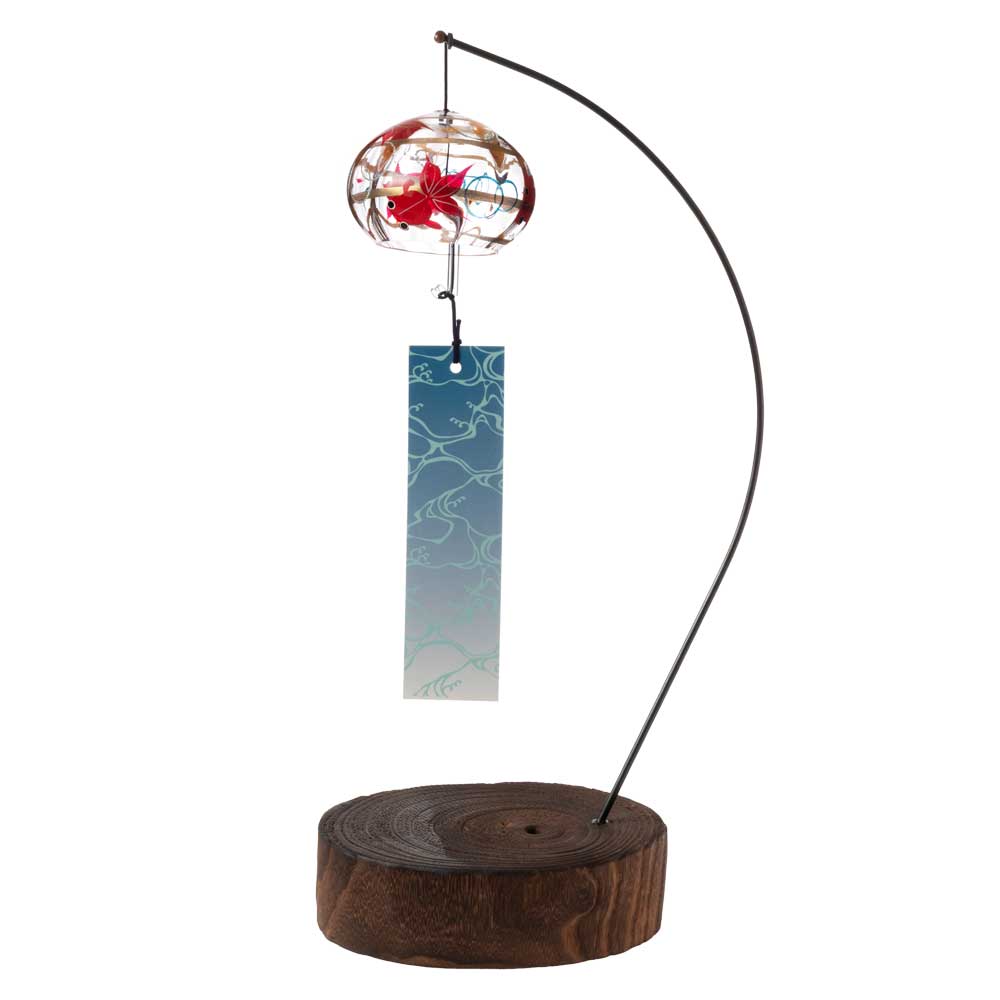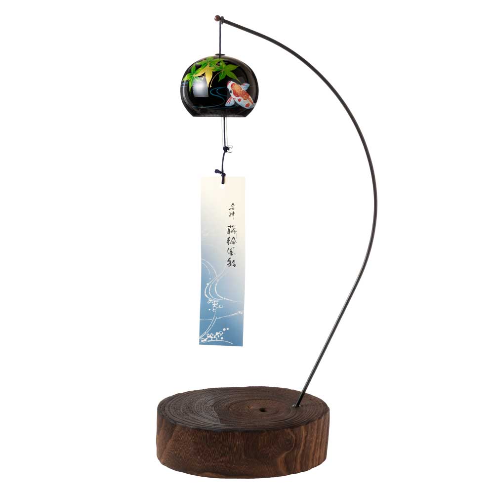 木之本 うるし匠風鈴+スタンドセット もみじに鯉 室内卓上飾り用 クリスタルガラス ハンドクラフト 和風和柄のウィンドチャイム 日...