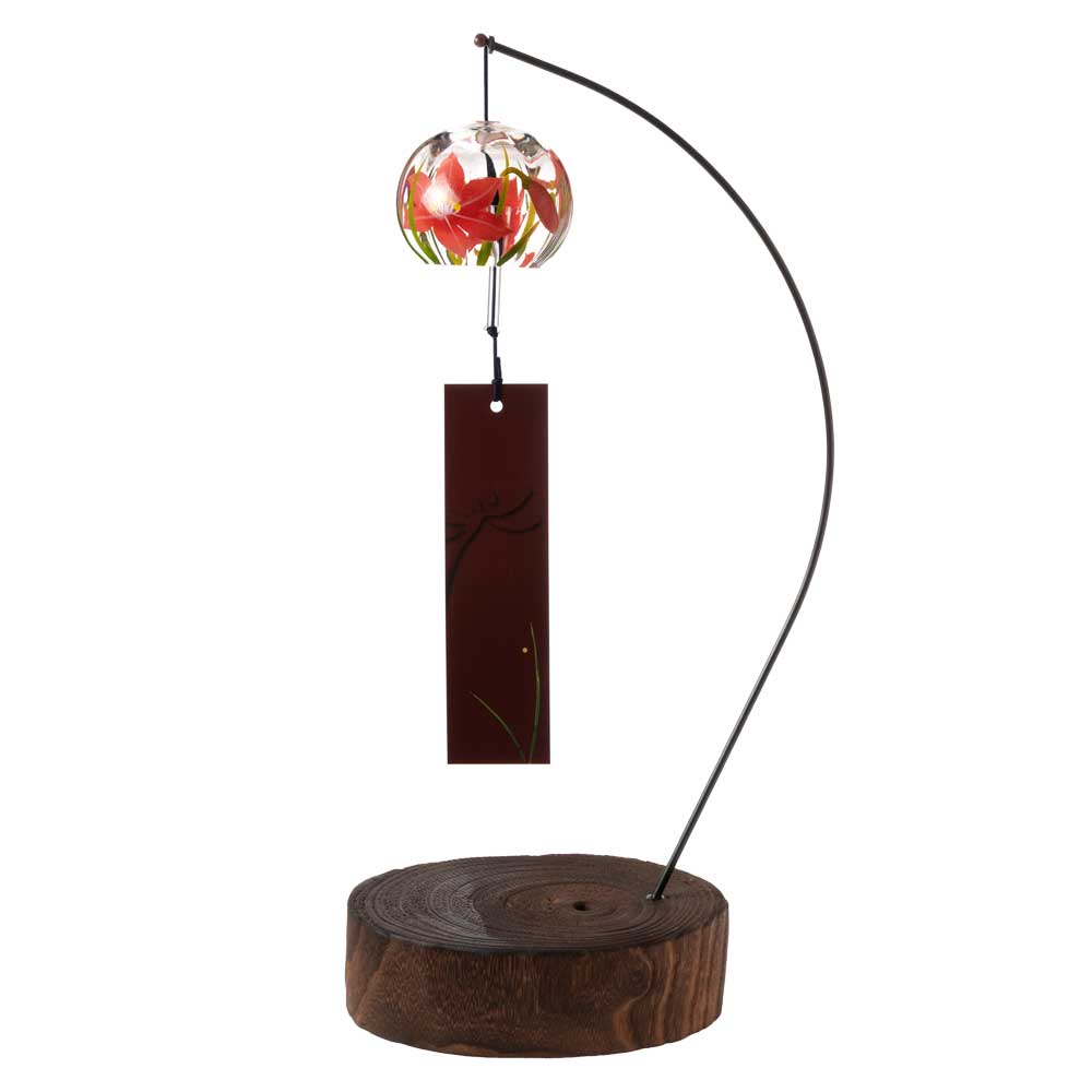 木之本 ぎやまん風鈴+スタンドセット 赤い花 室内卓上飾り用 クリスタルガラス ハンドクラフト 和風和柄のウィンドチャイム 日本製...
