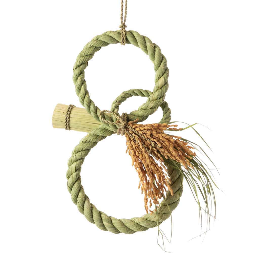 正月しめ飾り わらむ 三拍子(さんびょうし) 国産わらの縁起物 玄関飾り マンションのドアにも 壁掛け 30×23cm 日本製 国...