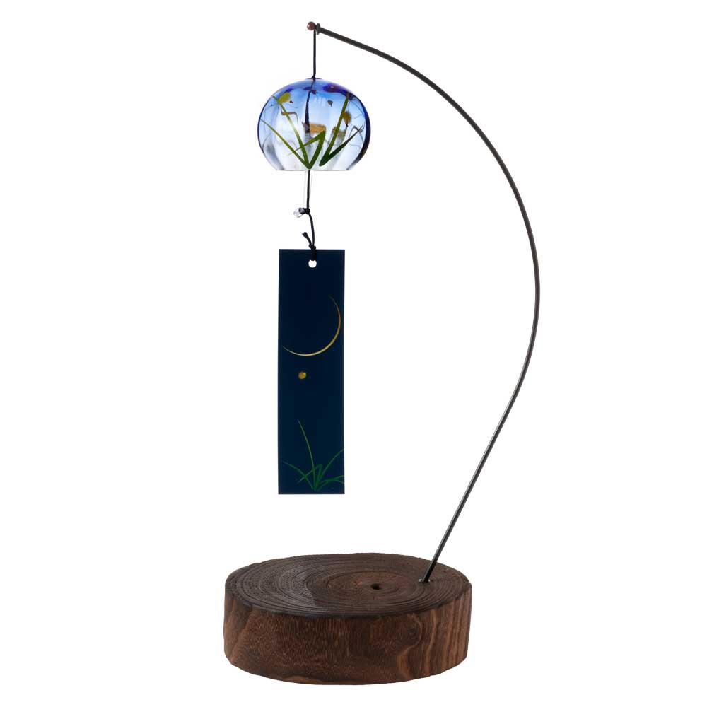 木之本 ぎやまん風鈴+スタンドセット ほたる・ブルー 室内卓上飾り用 クリスタルガラス ハンドクラフト 和風和柄のウィンドチャイム...