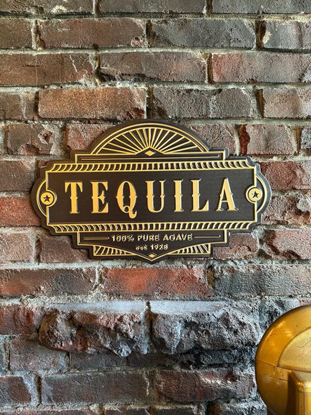 古い建物の看板みたいなお酒の看板 (テキーラ) エンボスティン ティンサイン ブリキ看板