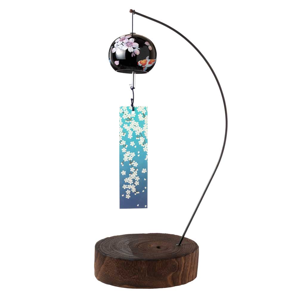 木之本 うるし匠風鈴+スタンドセット さくらに鯉 室内卓上飾り用 クリスタルガラス ハンドクラフト 和風和柄のウィンドチャイム 日...