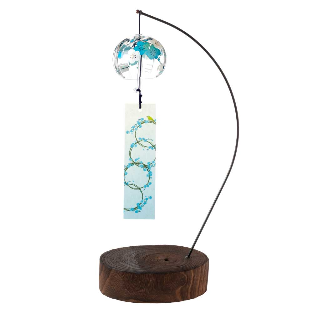 木之本 ぎやまん風鈴+スタンドセット 水色梅 室内卓上飾り用 クリスタルガラス ハンドクラフト 和風和柄のウィンドチャイム 日本製...
