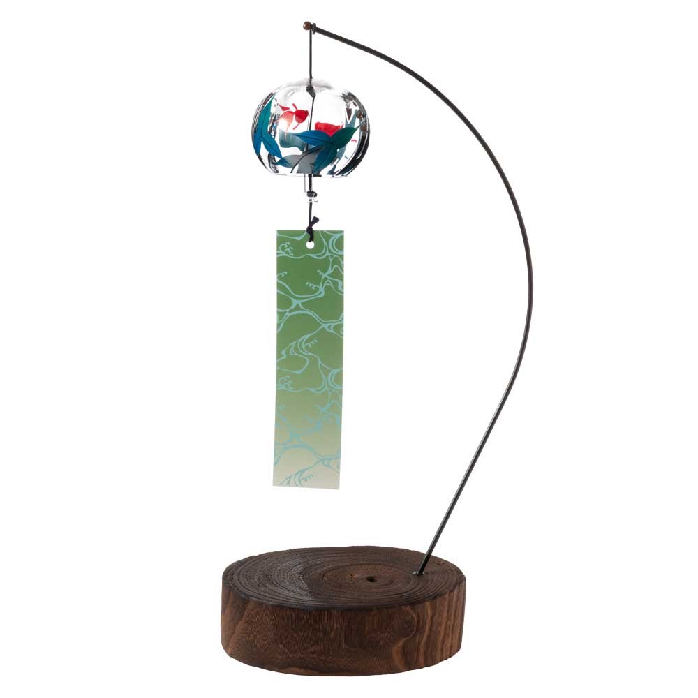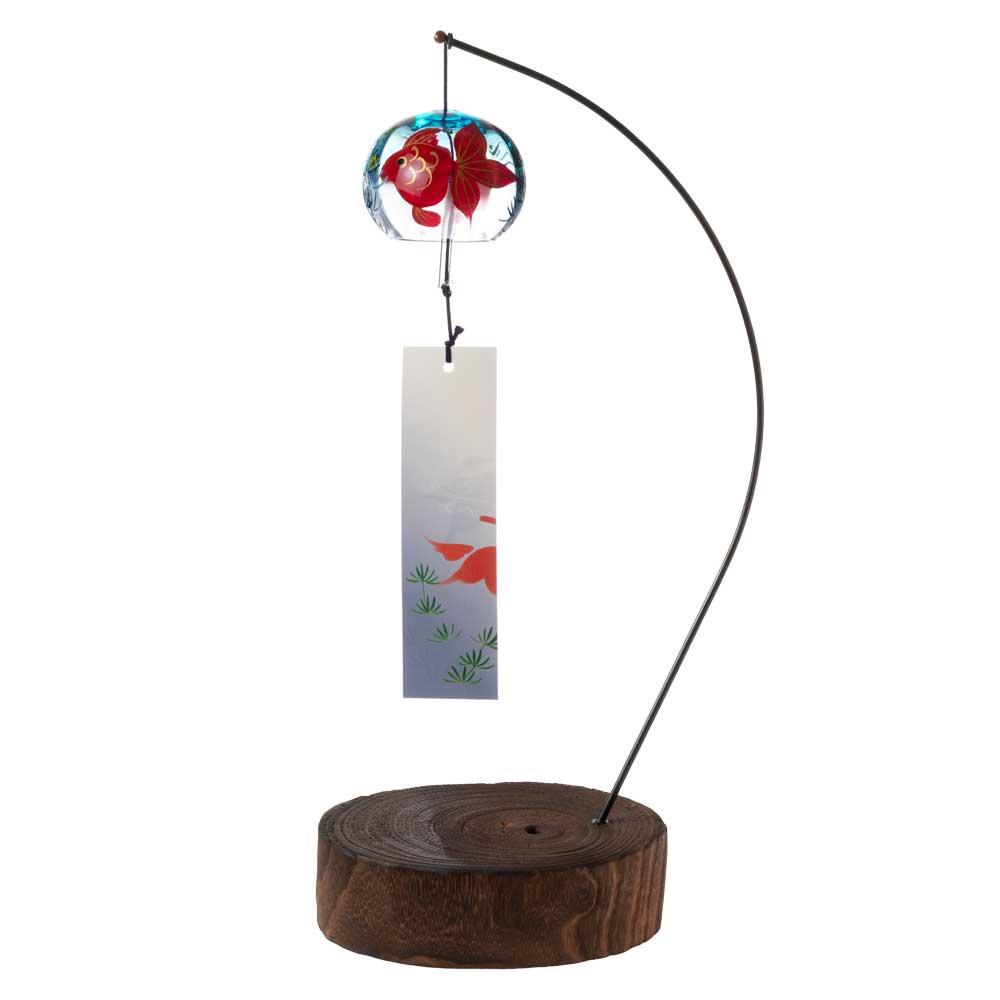 木之本 ぎやまん風鈴+スタンドセット 流水金魚 室内卓上飾り用 クリスタルガラス ハンドクラフト 和風和柄のウィンドチャイム 日本...